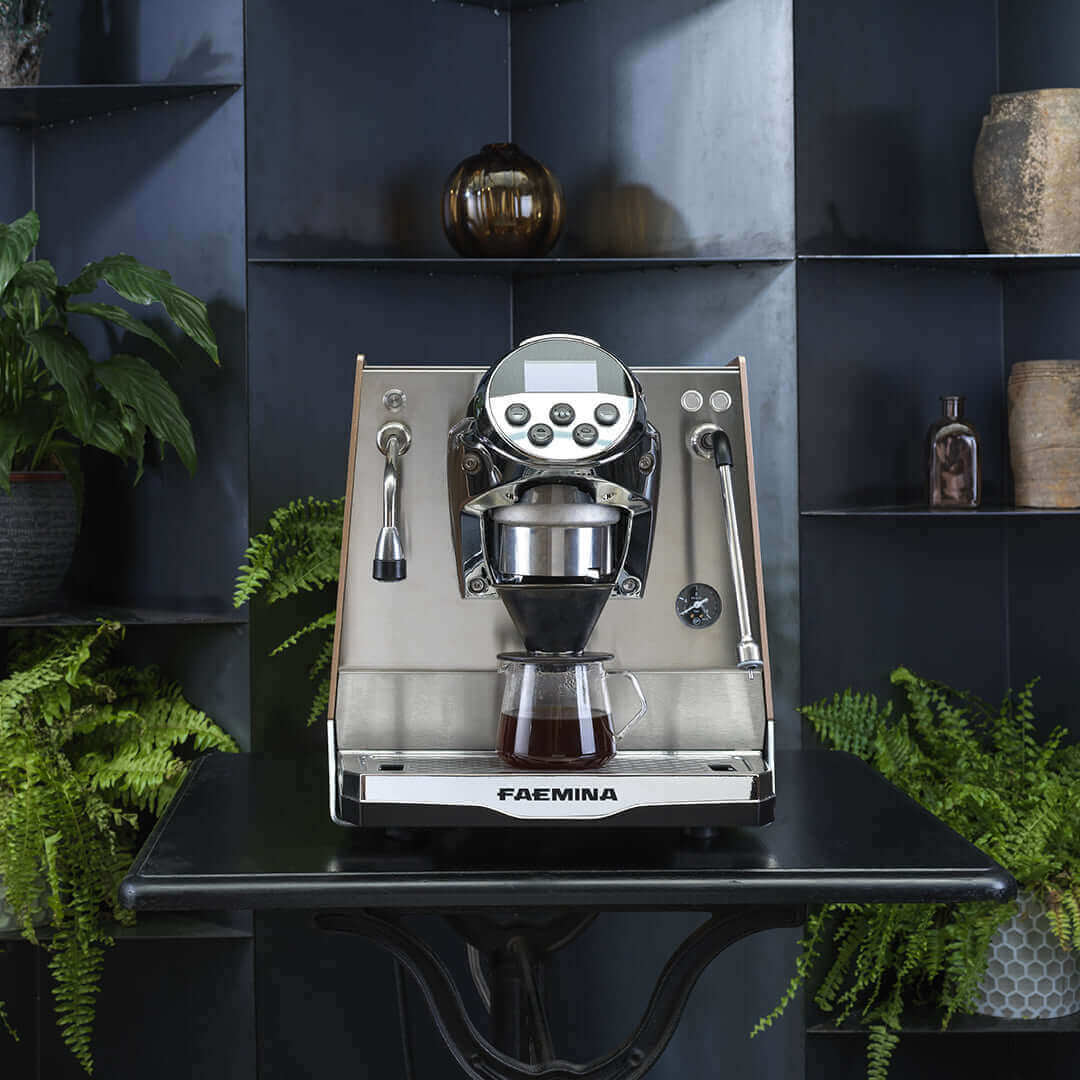 Heute, mehr als 80 Jahre später, lebt das Erbe weiter. Faema ist ein stolzer Teil der Gruppo Cimbali und verbindet weiterhin Tradition und Zukunft in Maschinen, die zu 100 % in Italien entworfen und hergestellt werden. Die neue Faemina wurde in Zusammenarbeit mit dem legendären Designhaus Italdesign Giugiaro geschaffen – eine moderne Hommage an das Original, jedoch mit Doppelkesselsystem, intelligenter Technologie und Präzision, die selbst den besten professionellen Maschinen entspricht.
