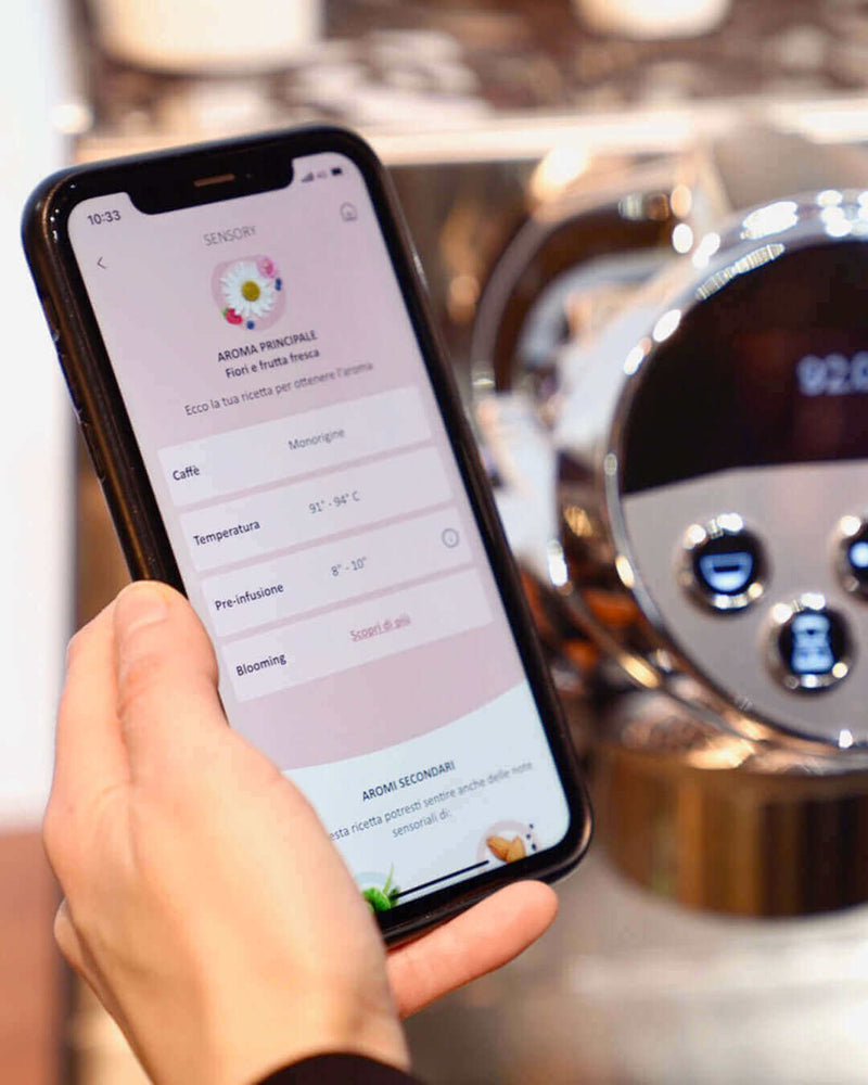 Präzise Temperatursteuerung und smarte Features – über Display oder BeFaema-App mit einstellbarer Pre-Infusion, Rezepten, sensorischer Anleitung und AR-Funktionen. Außerdem Sprachsteuerung, mit der Sie Videos, Infografiken und Expertenrat einfach per Sprachbefehl abrufen können.